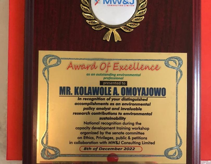 Celebrating Excellence: Mr. Kolawole A. Omoyajowo Honored for Environmental Policy Impact